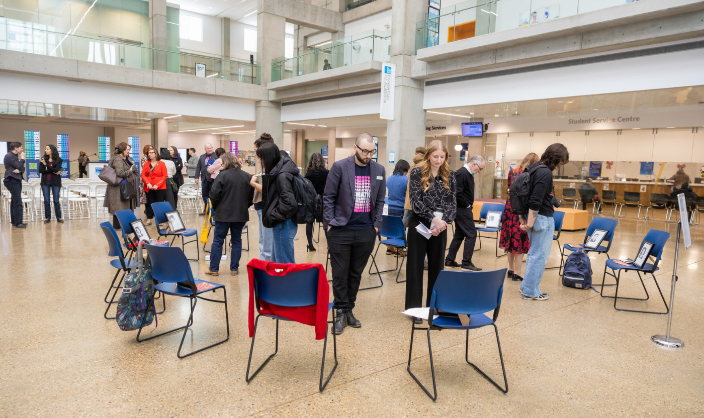 At the heart of the event is a powerful installation which includes 14 empty chairs placed in a circle, symbolizing the 14 lives lost. Each chair includes photos, personal information and items to represent each of the murdered women. The circle provides community members a place to pause, reflect, and consider the ongoing impact of gender-based violence.